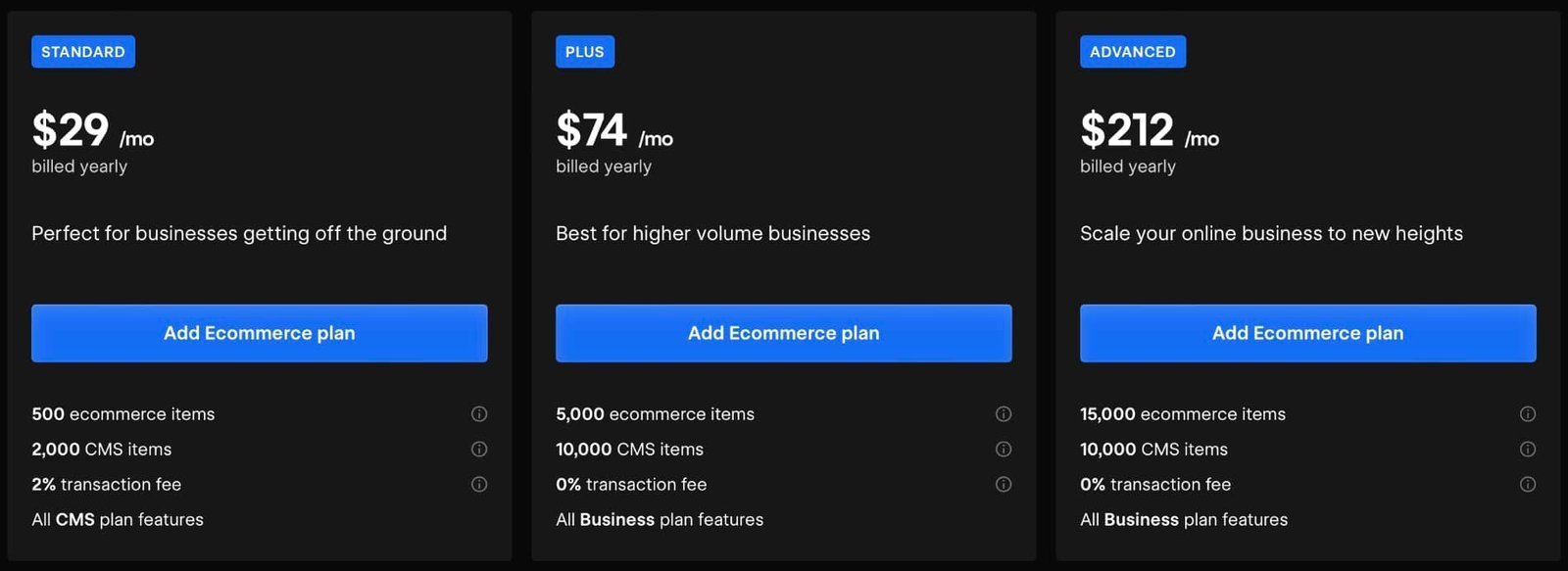 Webflow Ecommerce Preisübersicht: So viel bezahlen sie für einen Online Shop pro Monat!